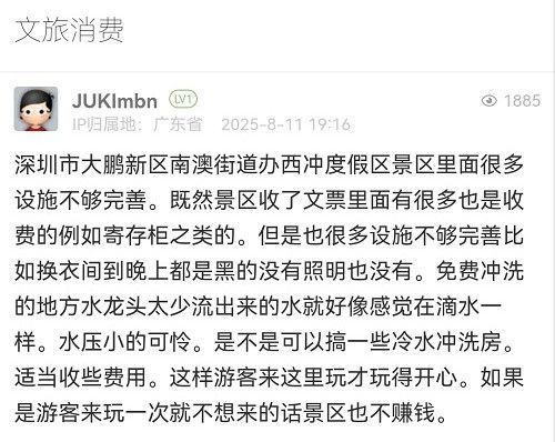 三、關(guān)于免費(fèi)沖洗水龍頭水流問題,因節(jié)假日高峰期同時沖洗的游客較多,導(dǎo)致水壓不足,水流較小,已安排人員進(jìn)行檢修,并計劃增加沖洗設(shè)施。