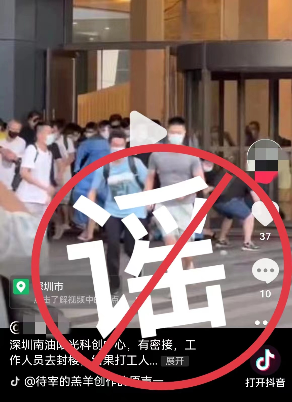 2022-08-12網(wǎng)傳深圳市南山區(qū)南油街道陽光科創(chuàng)中心有密接者,人們紛紛沖出大樓?辟謠:消息不實(shí)